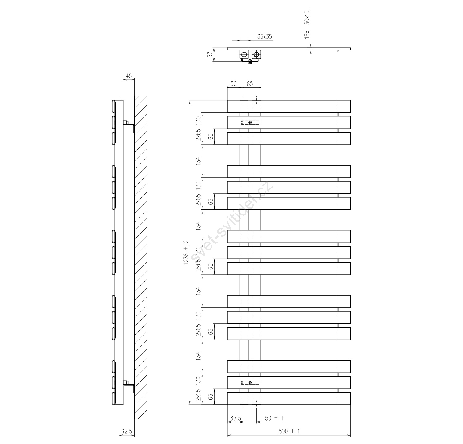 Sapho - Koupelnový radiátor SILVANA 561W/230V 50x123 cm matná černá