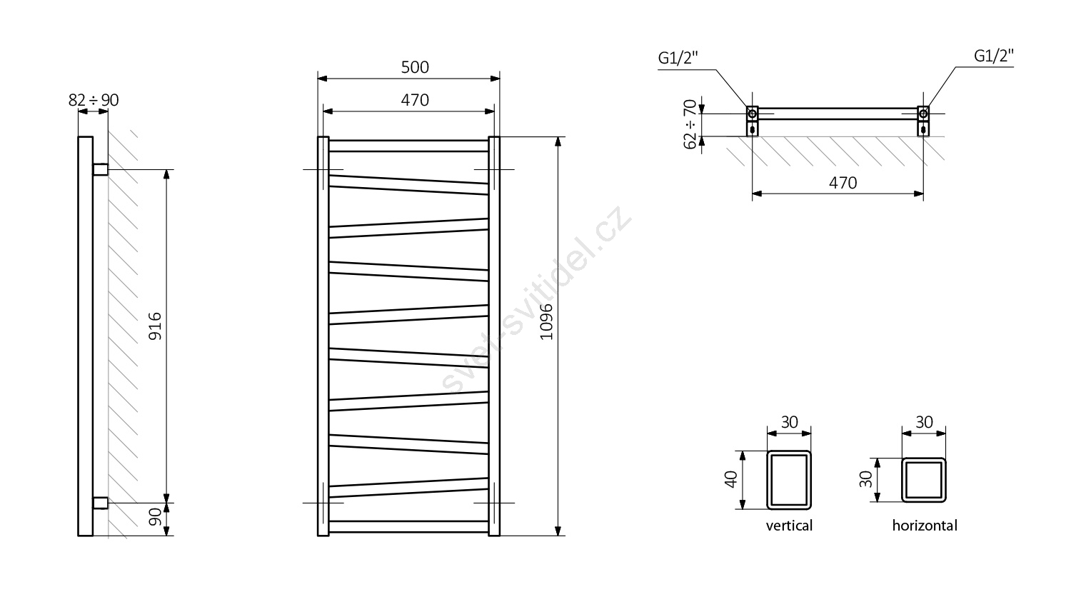 Sapho - Koupelnový radiátor ZIG 406W/230V 50x110 cm antracit