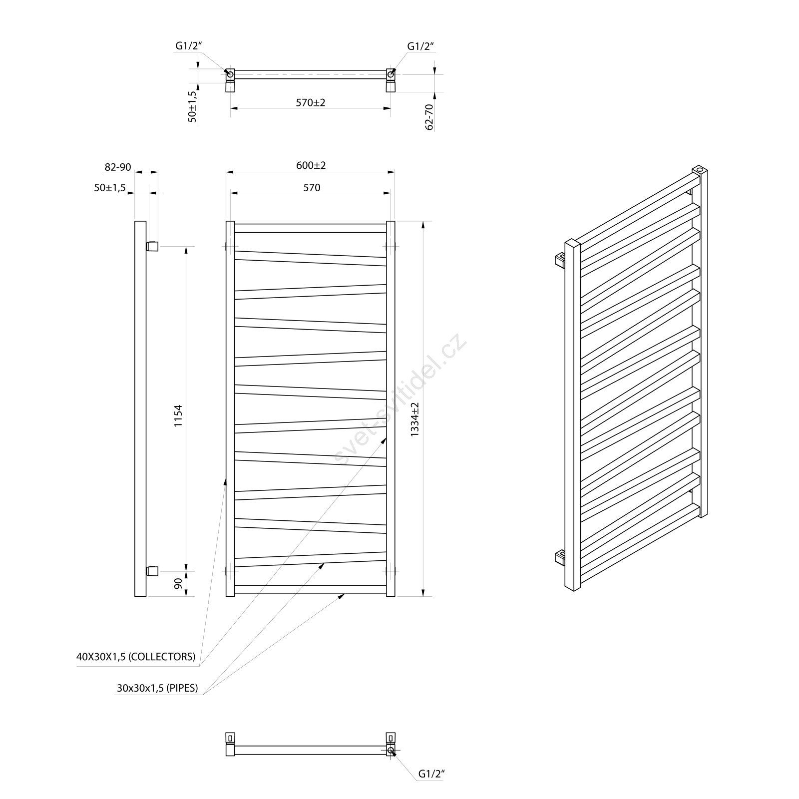 Sapho - Koupelnový radiátor ZIG 601W/230V 60x133 cm černá