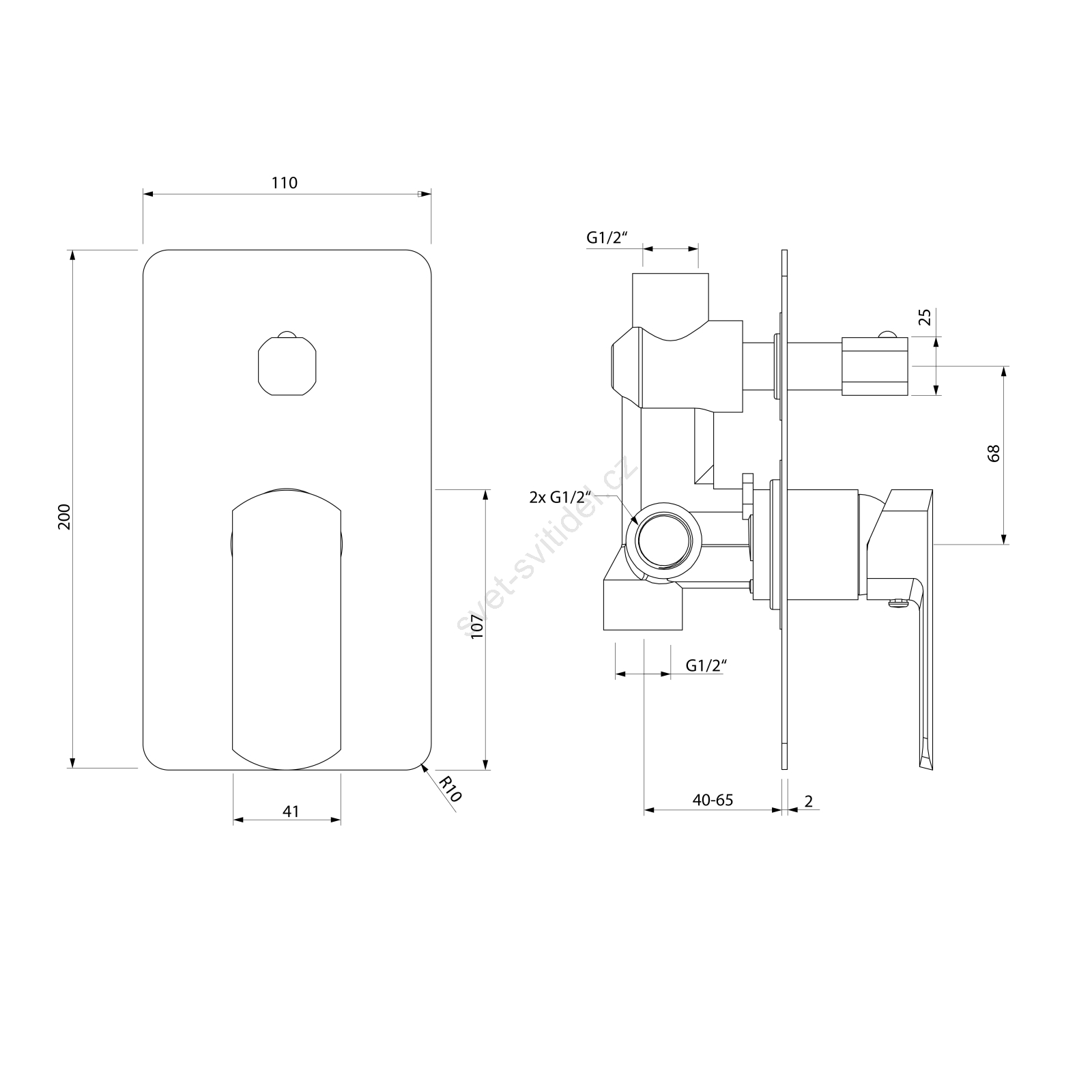 • Podomítková sprchová baterie mixona má moderní design s hranatými a oblými prvky.