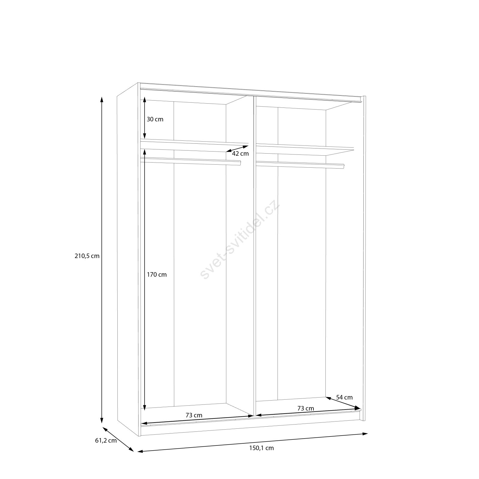 • Skříň disponuje šatními tyčemi, policemi a velkým úložným prostorem na vaše oblečení, tašky a sezónní věci.