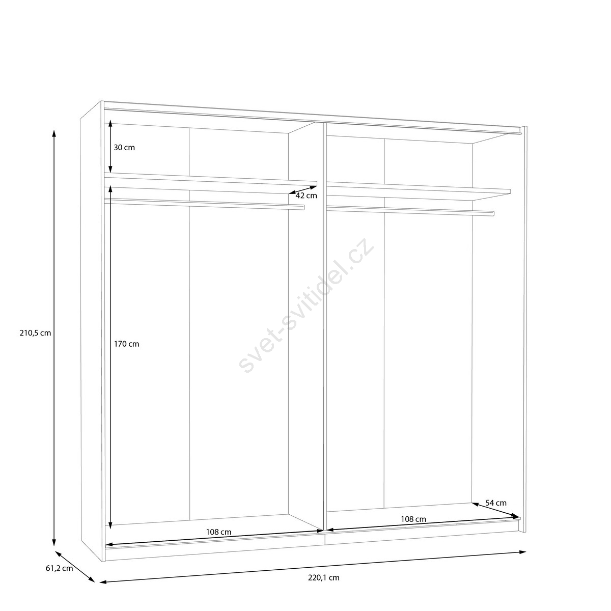 • Skříň disponuje šatními tyčemi, policemi a velkým úložným prostorem na vaše oblečení, tašky a sezónní věci.
