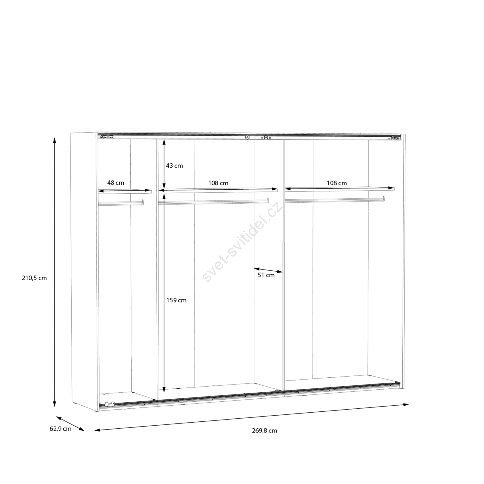 • Skříň disponuje šatními tyčemi, policemi a velkým úložným prostorem na vaše oblečení, tašky a sezónní věci.