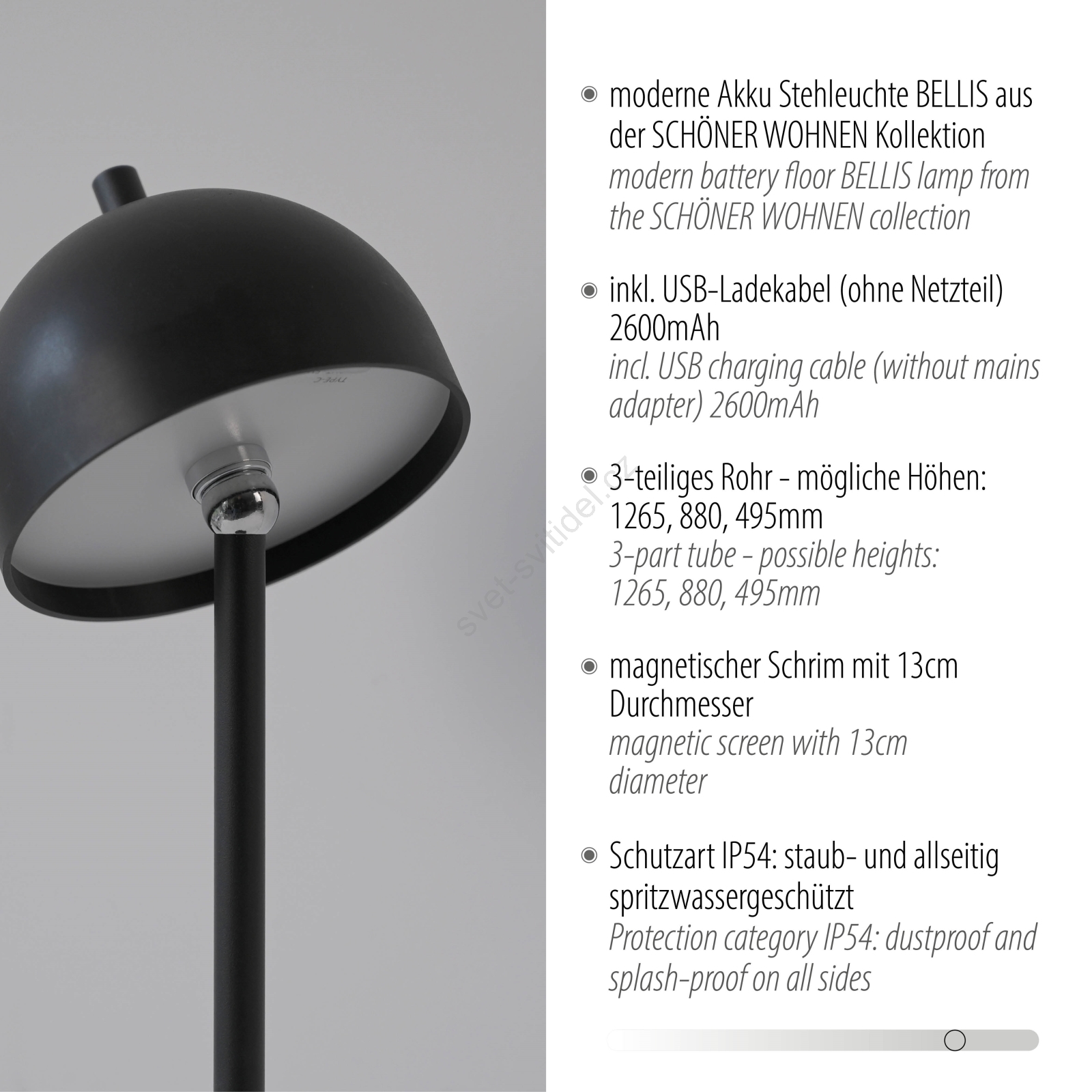 • Schöner Wohnen 19245-18 - LED Stmívatelná dotyková nabíjecí venkovní stojací lampa BELLIS LED/2,5W/5V 2600 mAh IP54 černá