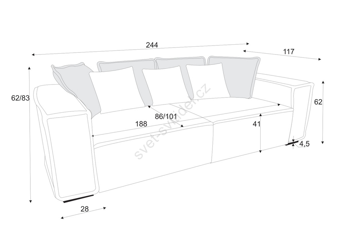 • Součástí balení je sada čtyř velkých polštářů (65 × 54 cm) a tří menších dekoračních polštářů (43 × 43 cm), díky nimž si můžete vytvořit dokonalou oporu zad nebo útulné posezení.
