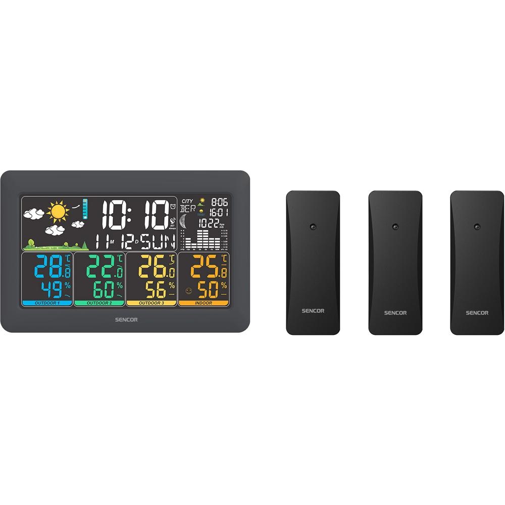 Sencor - Meteostanice s barevným LCD displejem + 3 senzory 3xAA + 6xAA černá