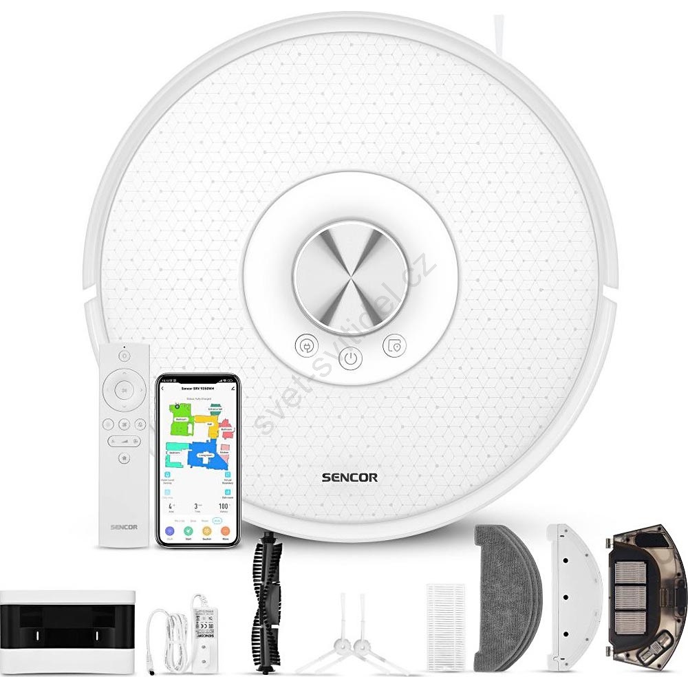 Sencor - Robotický vysavač s mopem 2v1 50W/5000 mAh Wi-Fi bílá + dálkové ovládání