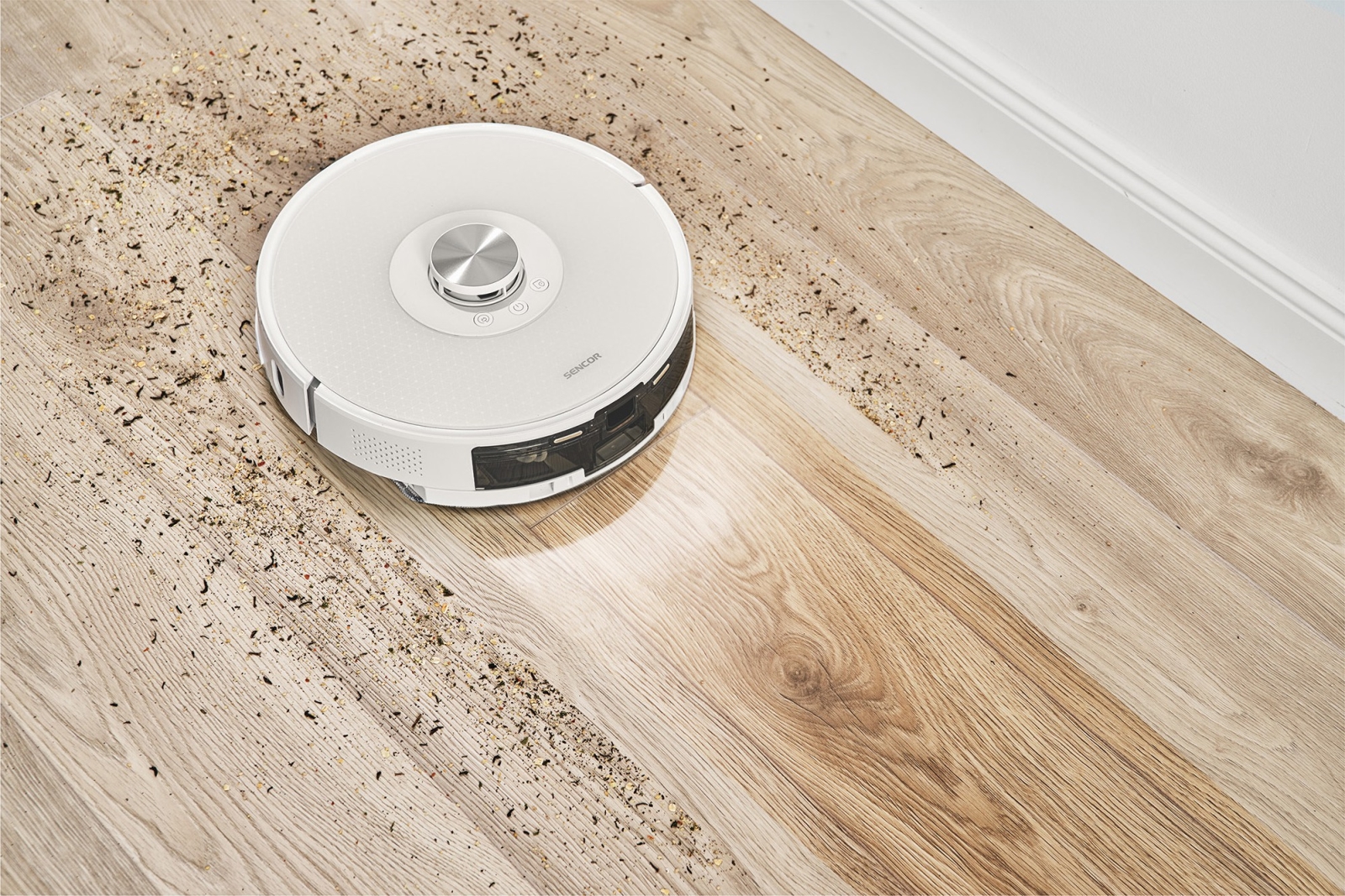 • Ovládat jej můžete pomocí tlačítka na vysavači, dálkového ovládání nebo pomocí aplikace Sencor HOME (kompatibilní s iOS i Android) přes Wi-Fi.