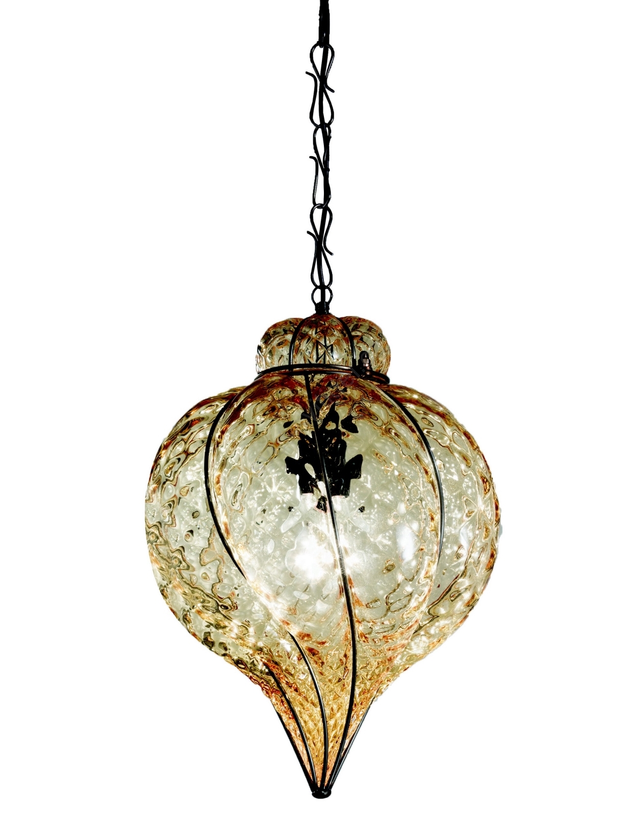 • SIRU - Lustr na řetězu GOCCIA 1xE27/60W/230V pr. 25 cm čirá/hnědá benátské sklo