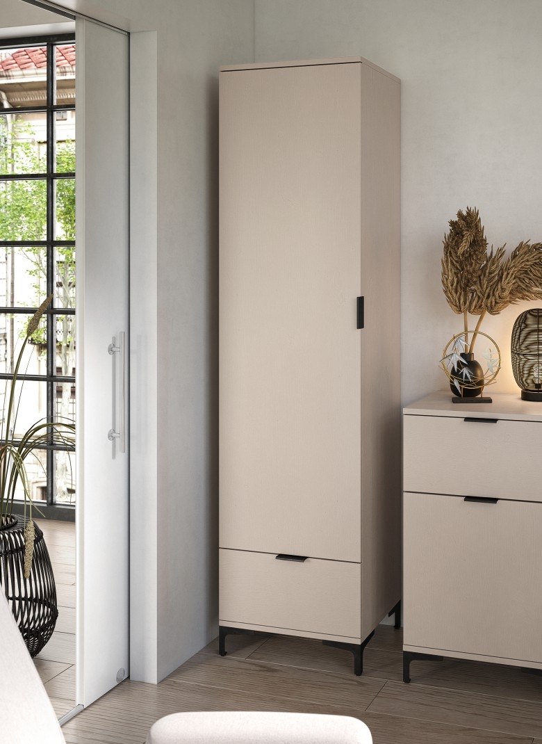 • Nábytek je vyroben ve stylu loft a vyznačuje se kovovými nohami a úchyty, které mu dodávají další industriální nádech.
