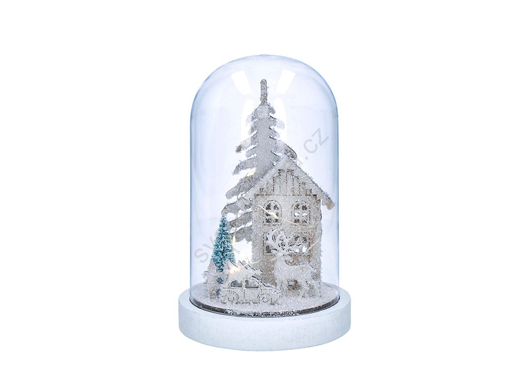 LED Vánoční dekorace LED/2xAAA zasněžená krajina s domkem
