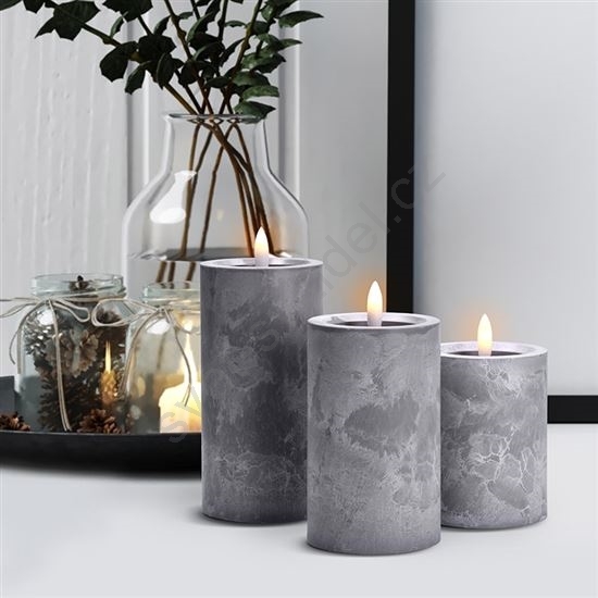 • Sada LED svíček s přirozeně blikajícím plamenem a dekorem šedého mramoru.