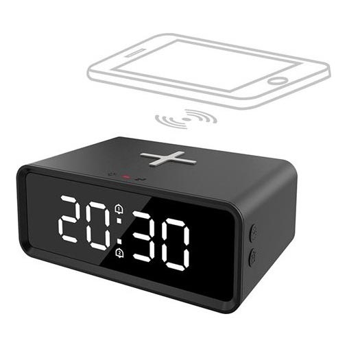 Digitální hodiny s Qi bezdrátovou nabíječkou 230V/CR2032 černá