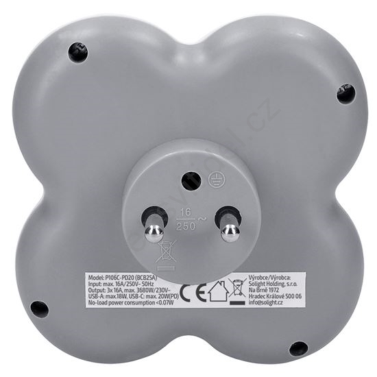 Rozbočka 3x 16A + USB A+C rychlonabíječka 20W