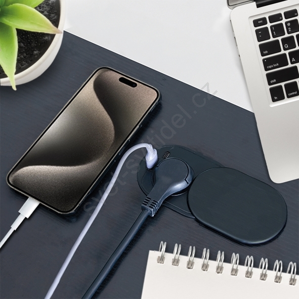 • Vestavná zásuvka s kombinací klasického napájení a USB-nabíjení, ideální pro pracovní desku nebo stůl.