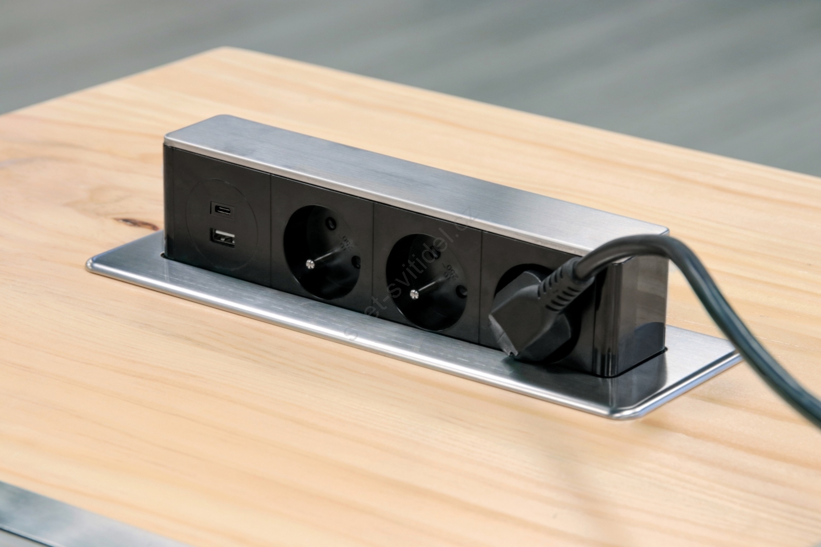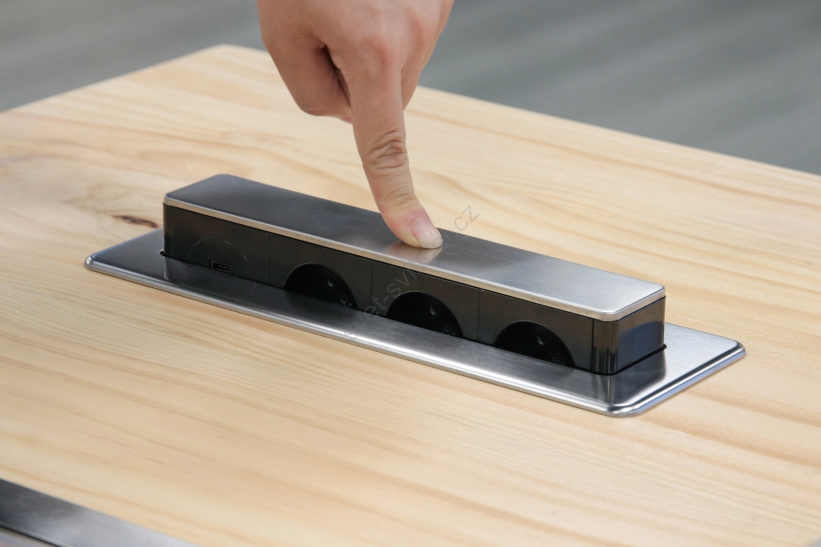 • Zásuvkový sloupek určený pro montáž do pracovní desky nebo stolu, který se vysune jen tehdy, když je potřeba, a jinak zůstává skrytý, čímž šetří prostor.