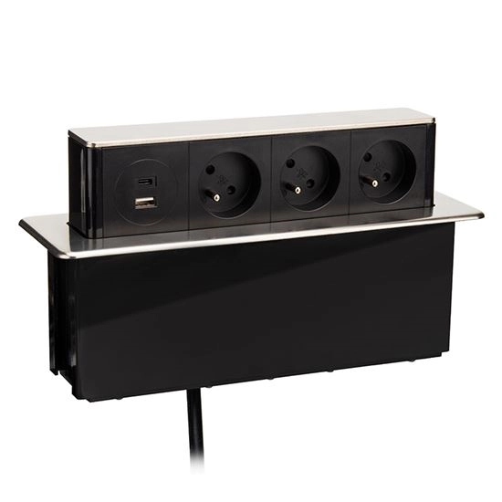 Zásuvkový sloupek pro desku stolu 3x230V + USB-A + USB-C