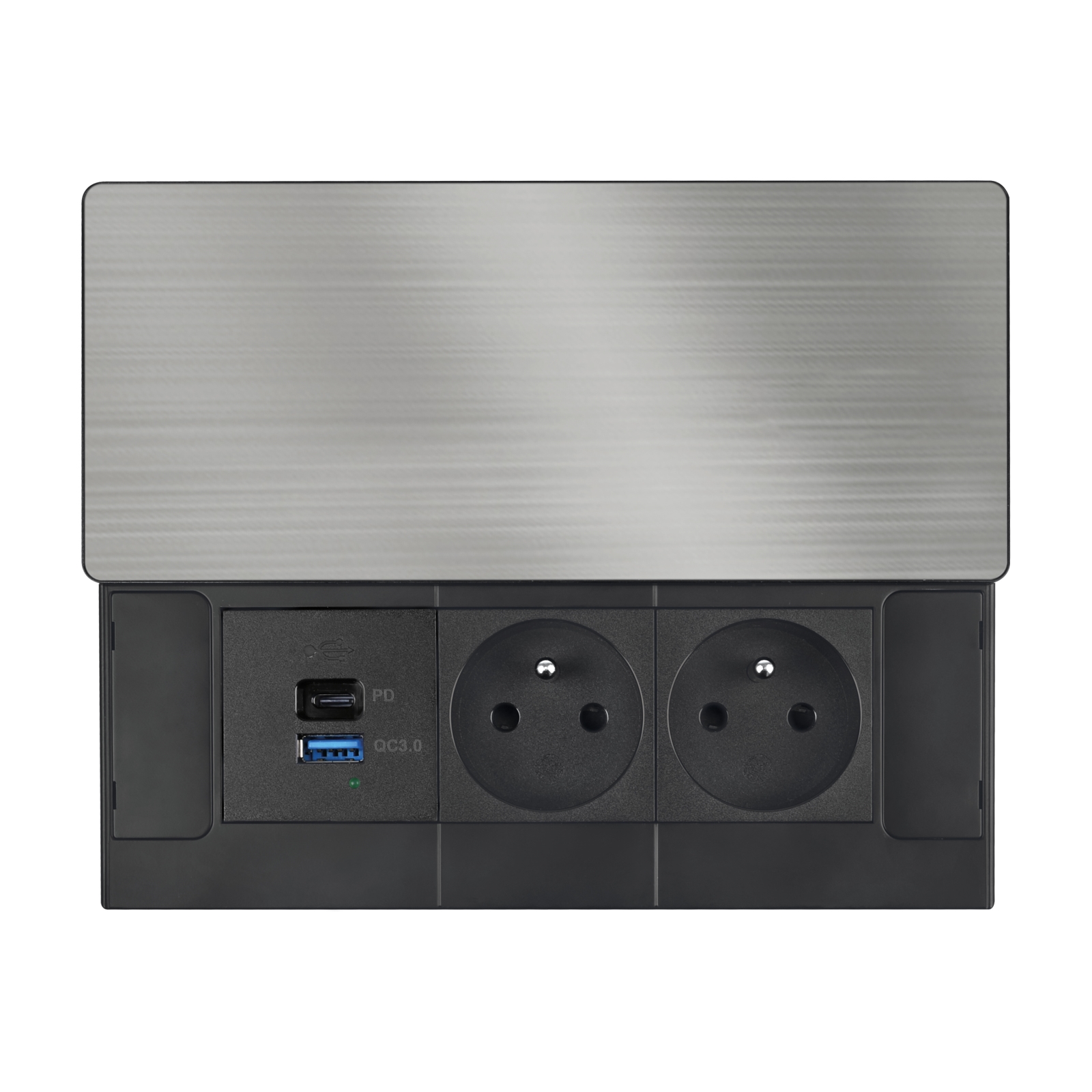 • Vestavný blok zásuvek s posuvným krytem, určený pro montáž do pracovní desky či nábytku, který zůstane elegantně skrytý, dokud jej nepotřebujete.