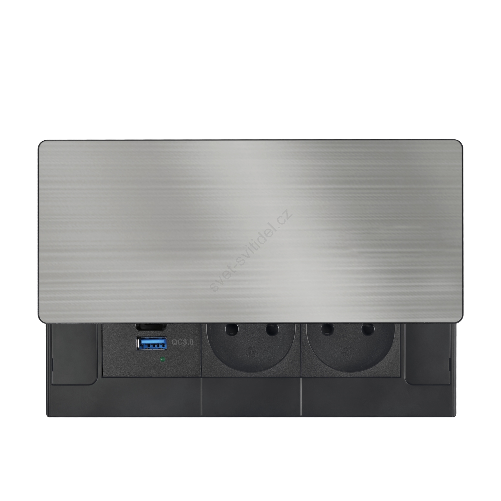 • Vrchní kryt je z tmavého matného nerezu a má posuvný mechanismus, který chrání přístroje i vnitřní části bloku před prachem a nečistotami.
