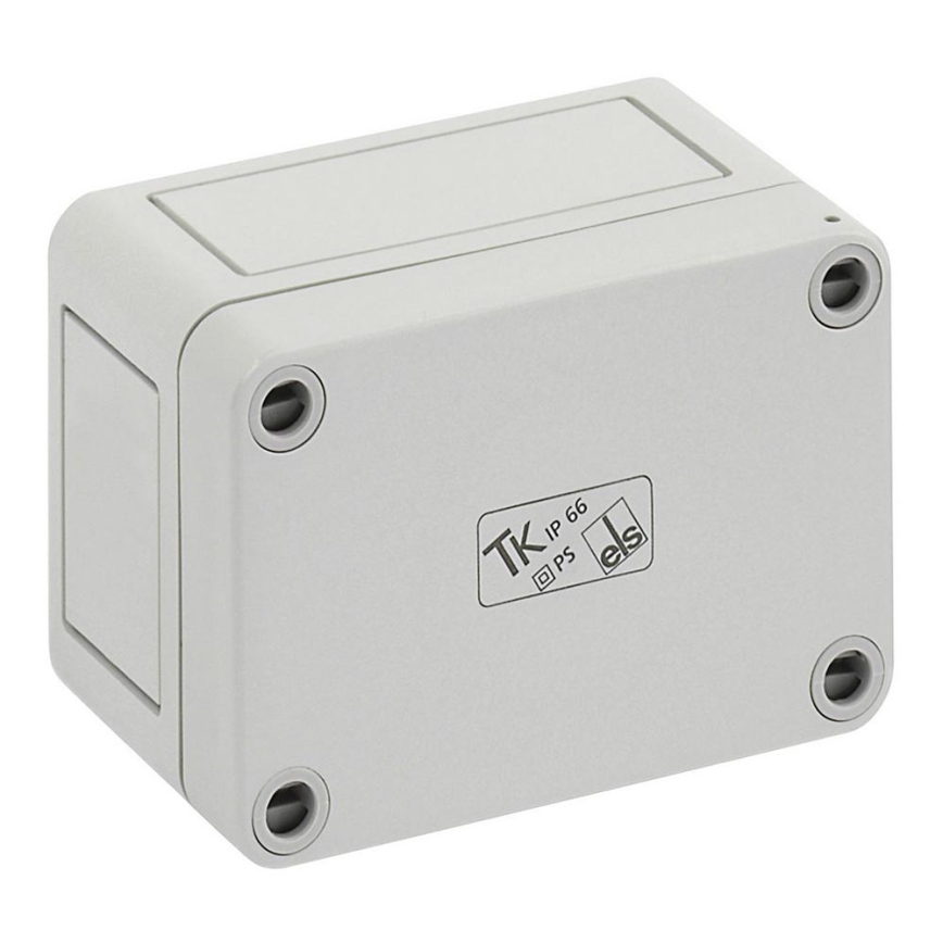 • Technická krabice v šedé barvě.