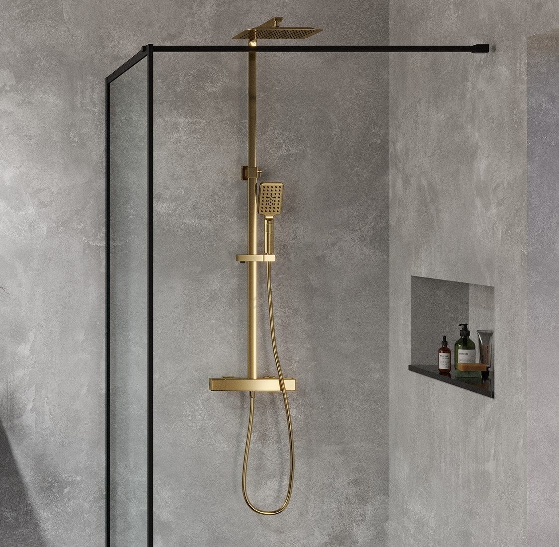 • Sprchová tyč a vrchní sprcha z nerezové oceli s povrchovou úpravou PVD.