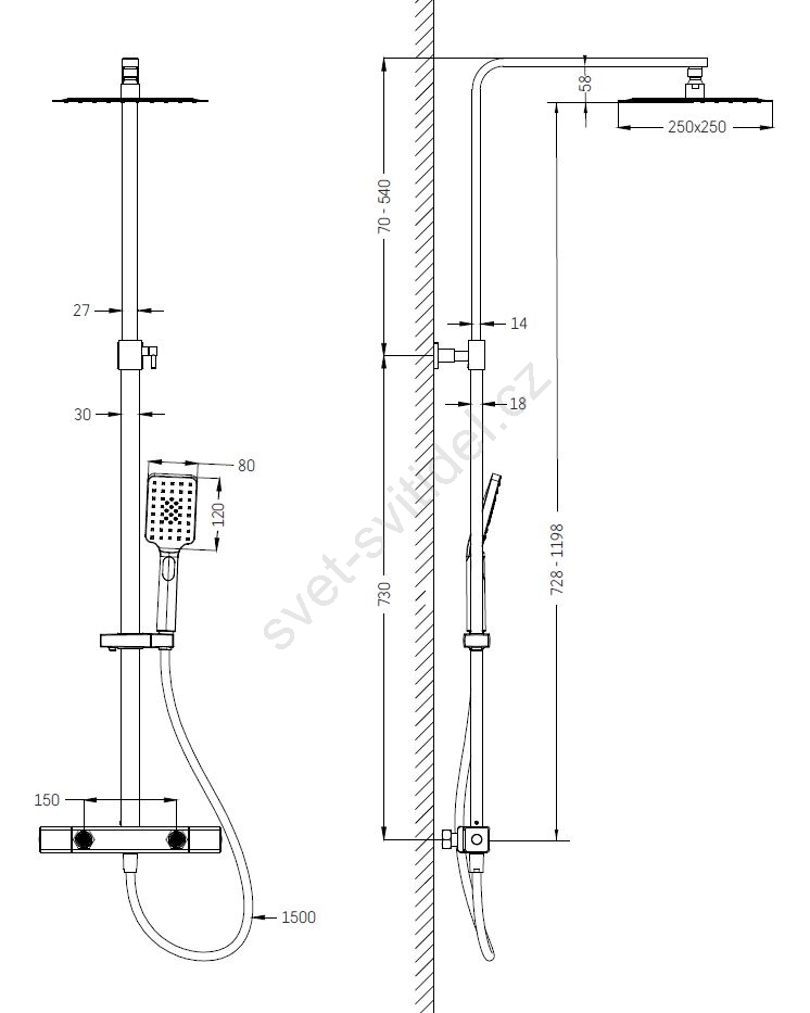 • Set se skládá z termostatické baterie z masivní mosazi.