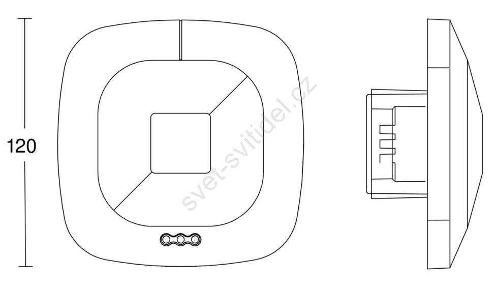 • Vysokofrekvenční hlásič funguje bez objektivu a je tedy velmi plochý (56 mm) a jen stěží rozeznatelný.