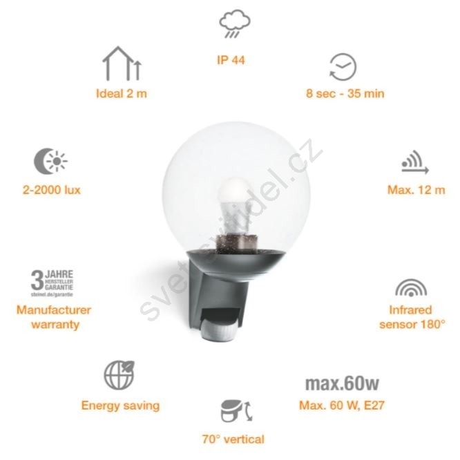 Steinel 035723 - Venkovní nástěnné svítidlo se senzorem L585S 1xE27/60W/230V IP44