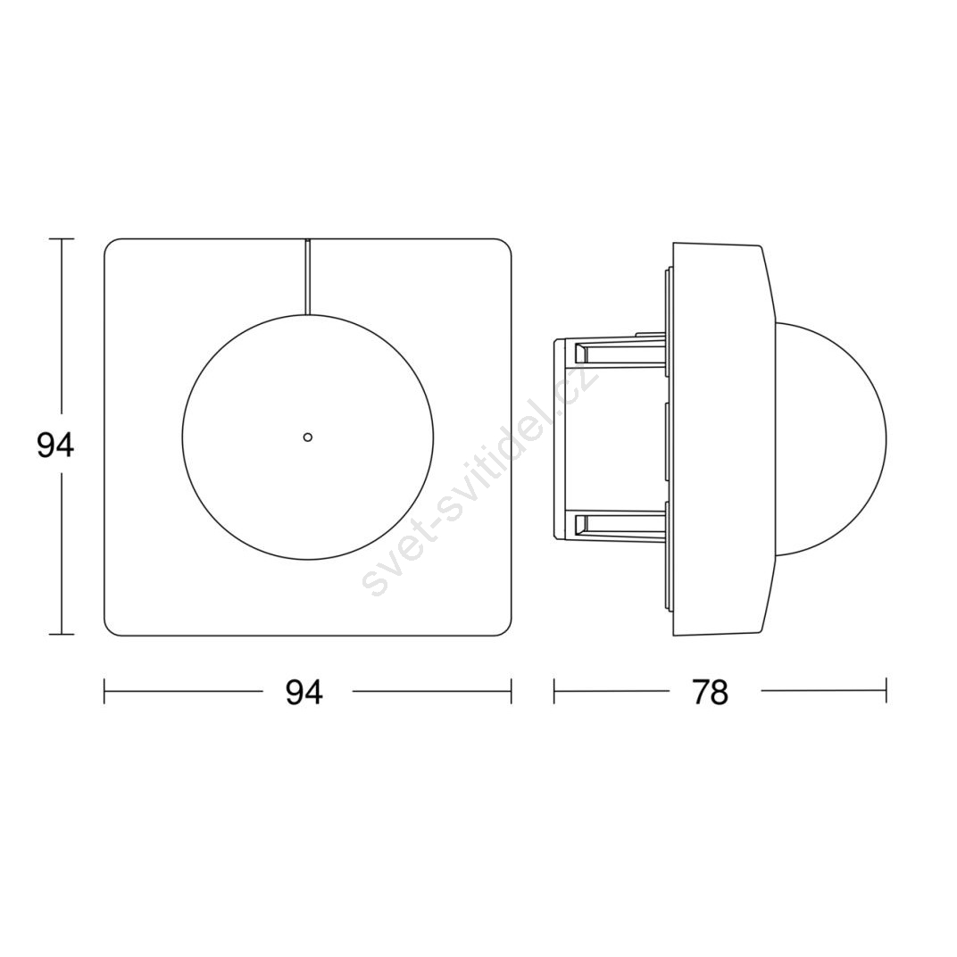 • Infračervený senzor k montáži na strop, kde poskytuje detekční úhel 360°.
