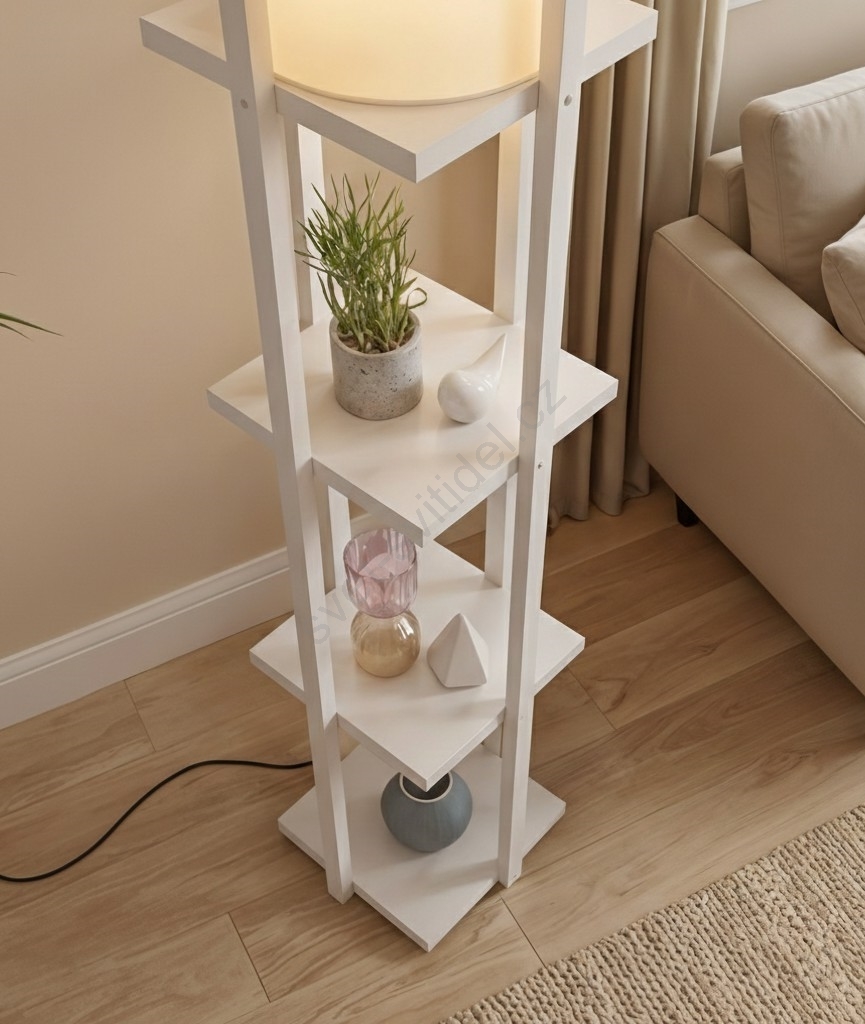 Stojací lampa s poličkami NORA 1xE27/40W/230V bílá