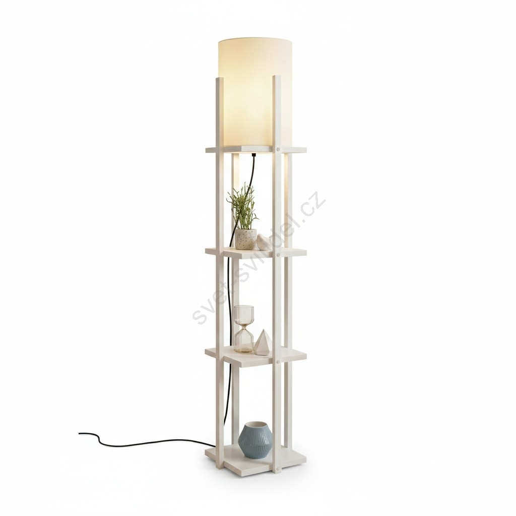 Stojací lampa s poličkami NORA 1xE27/40W/230V bílá charakterizuje pěkný design a funkční provedení. Do svítidla je určena žárovka s paticí E27. Zde si můžete koupit další žárovky za výhodnou cenu. Získáte tak zajímavý doplněk do svého domova.