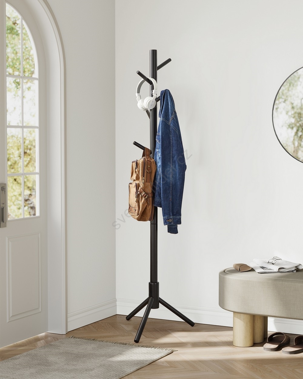 • S 8 zaoblenými háčky v různých výškách nabízí dostatek prostoru pro kabáty a tašky, aby se zabránilo překrývání.