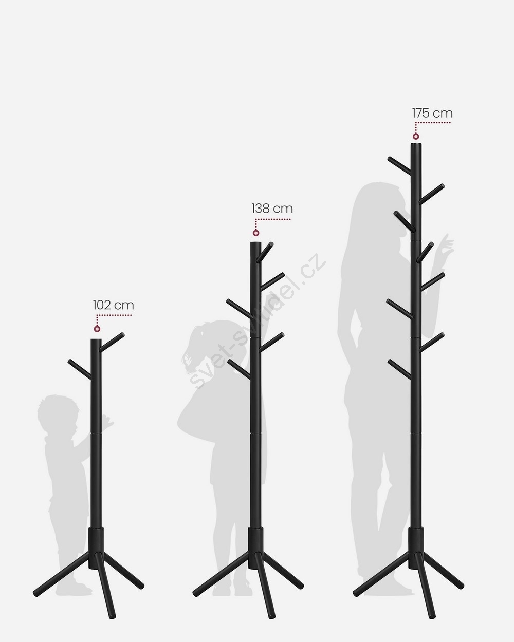 • Třídílná konstrukce vám umožňuje zvolit si výšku věšáku podle vašich požadavků - pro děti stačí pouze 1–2 sekce, pro dospělé nainstalujte všechny 3 sekce.