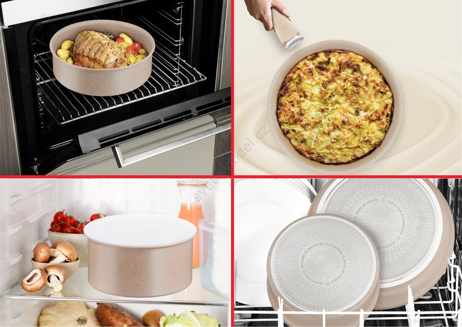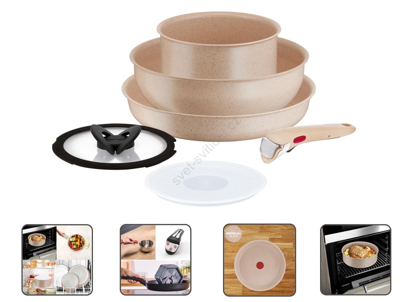 • S řešením odnímatelné rukojeti a stohovatelného designu lze ušetřit až 50 % místa v kuchyňských skříňkách.