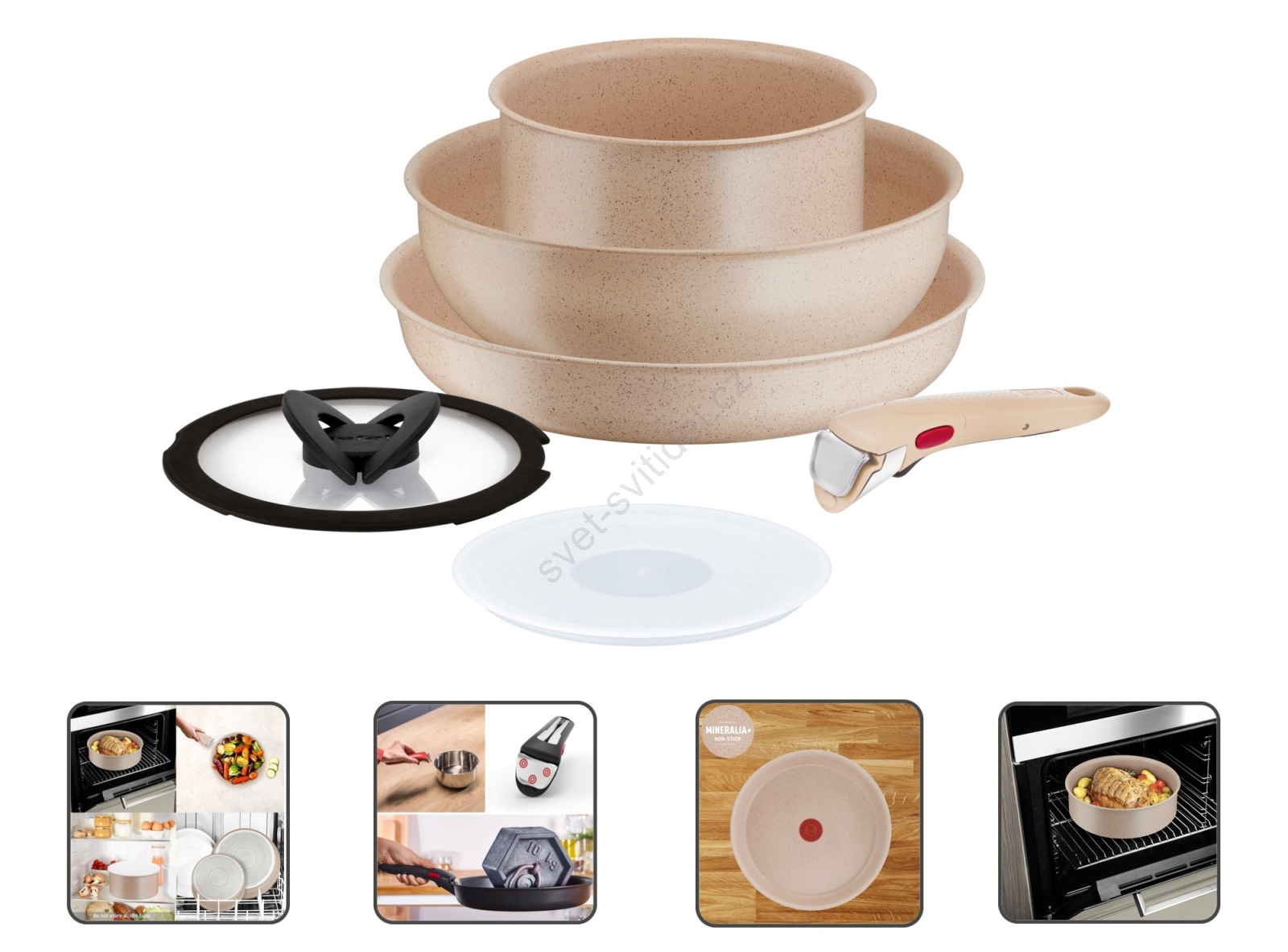 • S řešením odnímatelné rukojeti a stohovatelného designu lze ušetřit až 50 % místa v kuchyňských skříňkách.