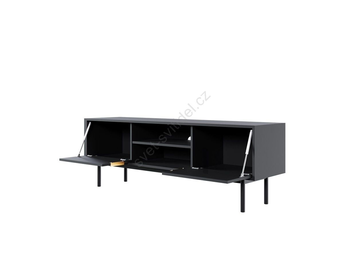 • Má dvě uzavřené boční přihrádky a dvě otevřené police, jedna s otvorem pro kabel, uprostřed.