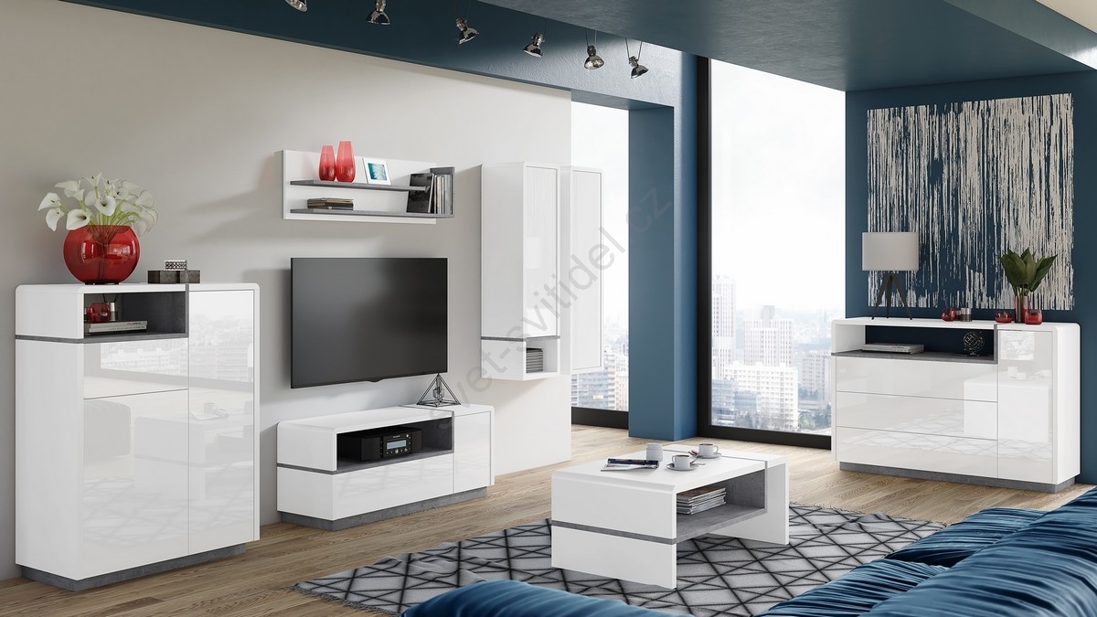 • Televizní stolek FRED 120x40 cm bílá/šedá