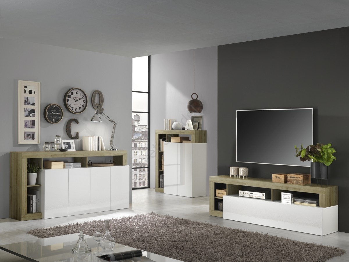 Televizní stolek LENOR 184x42 cm bílá/světlý dub