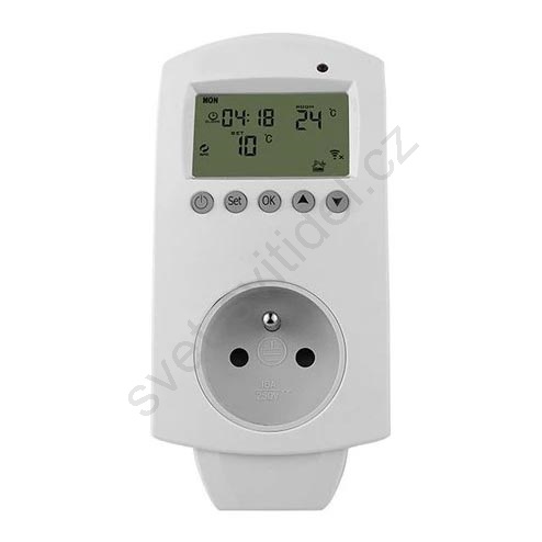 • Řídí napájení připojeného zařízení prostřednictvím výstupní zásuvky podle zvoleného programu, čímž zajišťuje úsporné a komfortní vytápění.