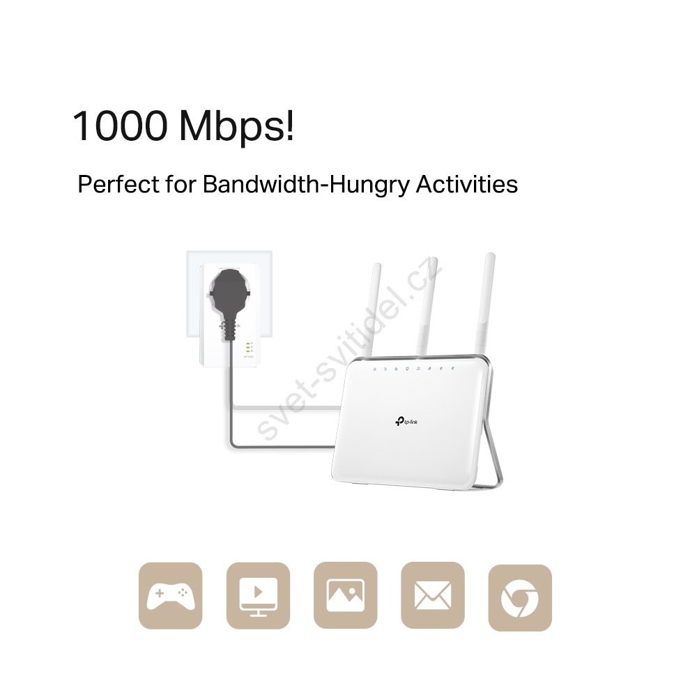 • Využívá standard HomePlug AV2, který zajišťuje rychlý přenos dat až do 1000 Mb/s.