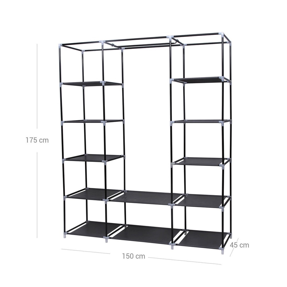 • Úložná látková skříň s policemi a šatní tyčí MATIS 150x175 cm černá