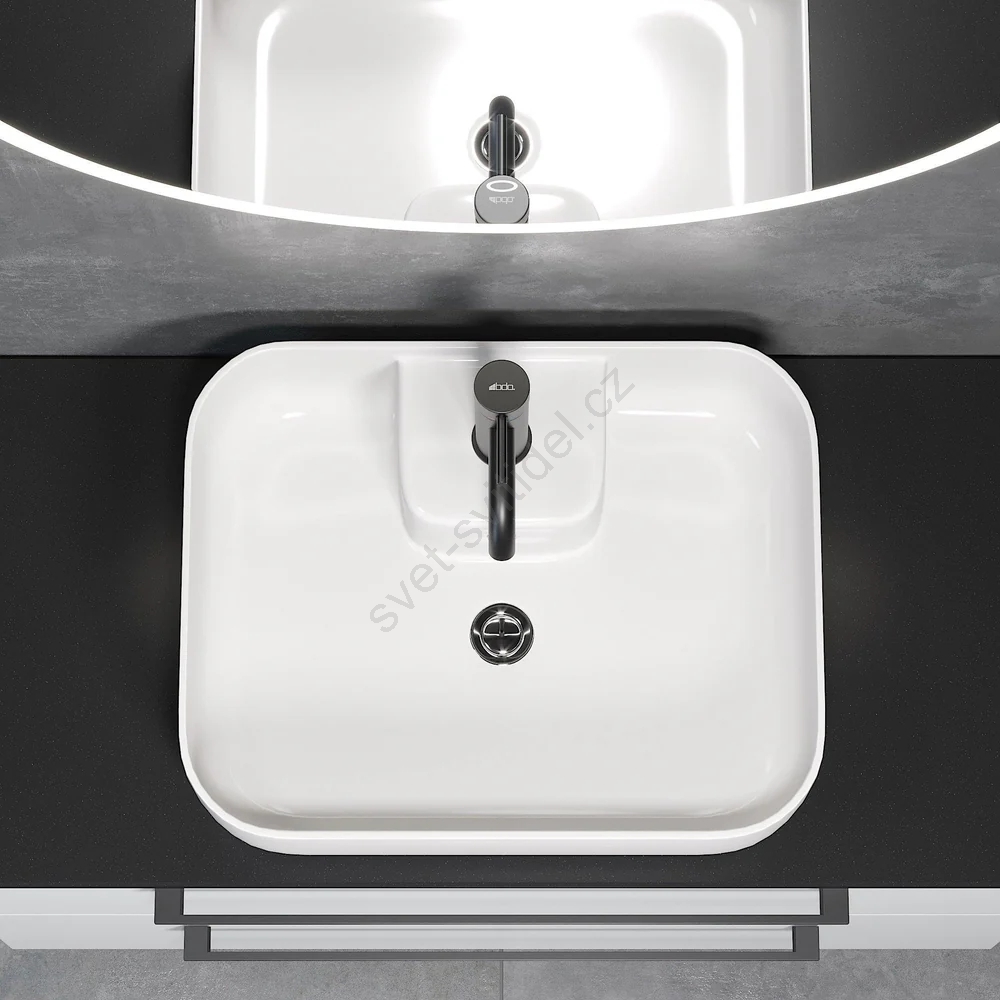 • Umyvadlo je určeno k instalaci na desku, což umožňuje flexibilní umístění a kombinaci s různými typy koupelnových desek.