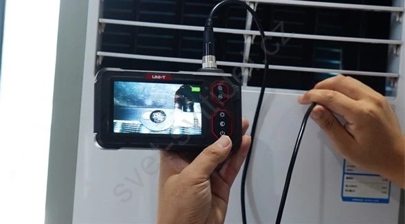 • Moderní velkoplošný průmyslový boroskop určený pro kontrolu motorů, potrubí, odtoků, průduchů či dutin ve stěnách budov.