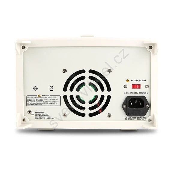 • Zdroj obsahuje teplotně řízený ventilátor, dlouhodobé teplotní přetížení transformátoru laboratotního zdroje hlídá čidlo, které při dosažení mezní hodnoty zdroj vypne a po ochlazení opět zapne.