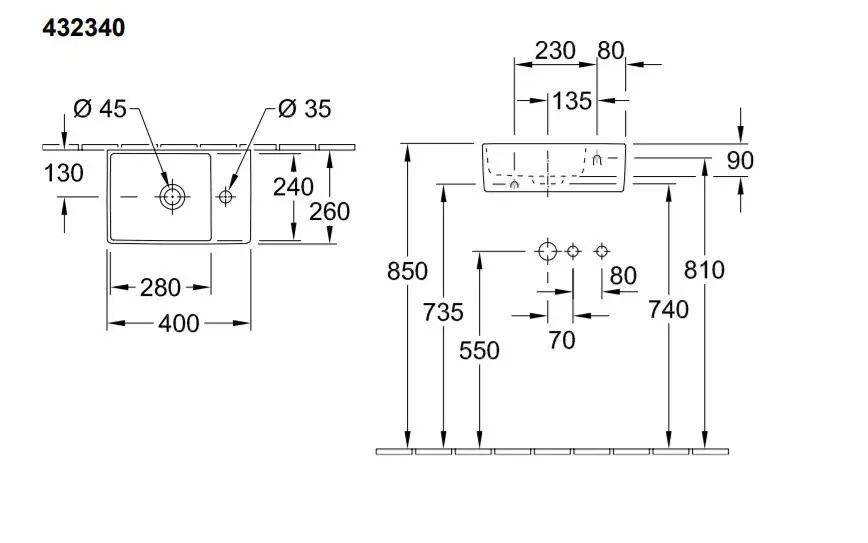 • Umyvadlová baterie a výpusť nejsou součástí balení.