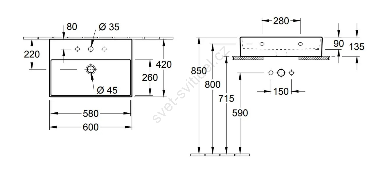 • Umyvadlo dodá vaší koupelně moderní vzhled a díky minimalistickému vzhledu zapadne do každého interiéru.