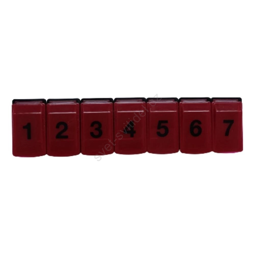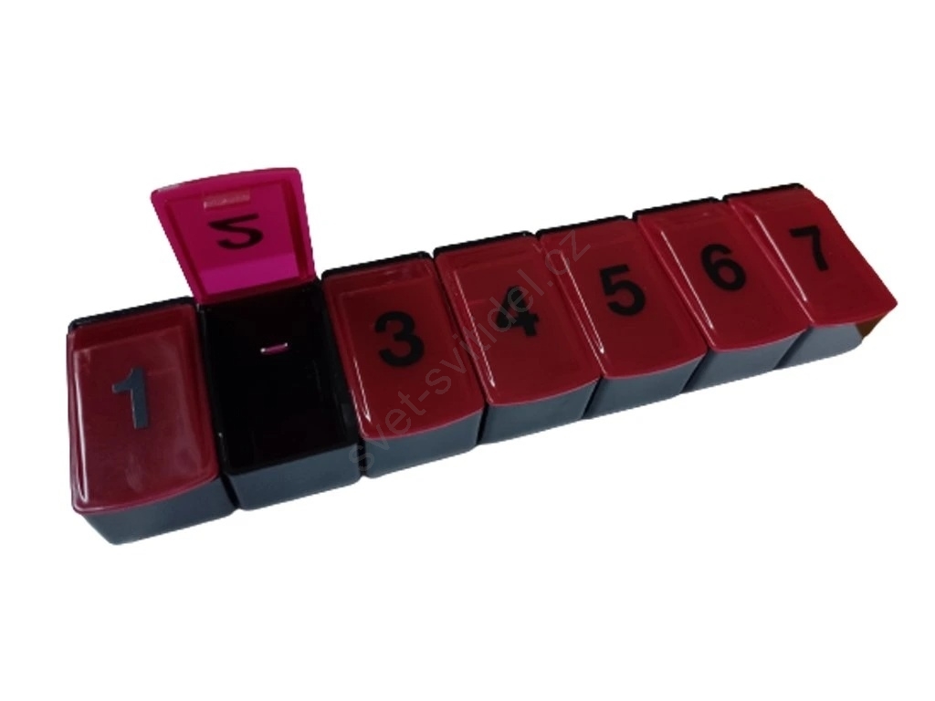 • Organizér je tvořen sedmi očíslovanými oddíly (jednotlivé dny), které jsou umístěny v jedné hlavní krabičce.