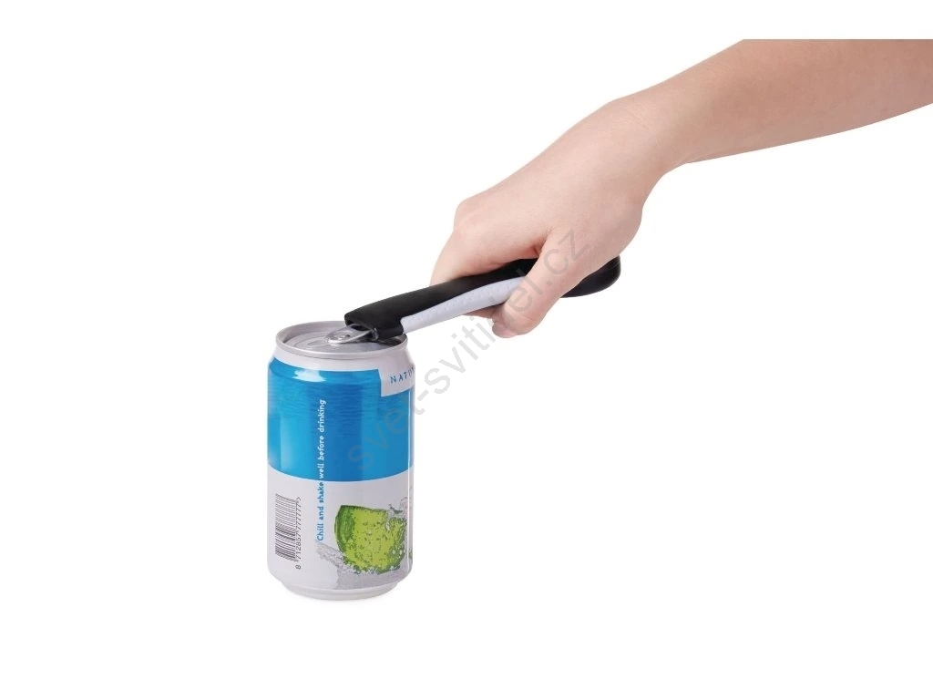 • Díky svému designu zvládne pět různých úkonů: otevření plechovky či konzervy, víčka od kompotu (zavařovací sklenice), a také běžného korunkového uzávěru ze skleněné láhve i šroubovacího uzávěru z PET láhve.
