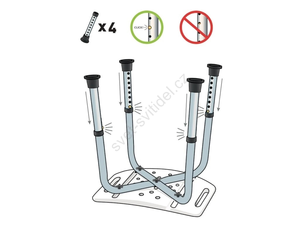 • Má odlehčené hliníkové nohy, které jsou výškově stavitelné.