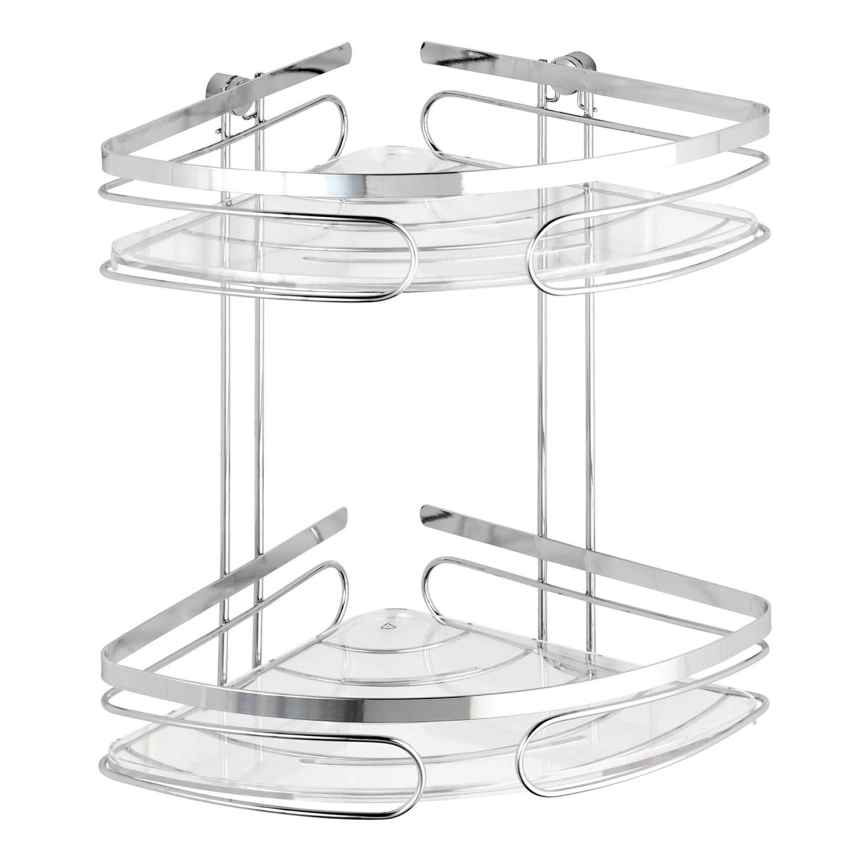 • Elegantní rohový stojan se dvěma policemi pro koupelnové doplňky a kosmetiku.